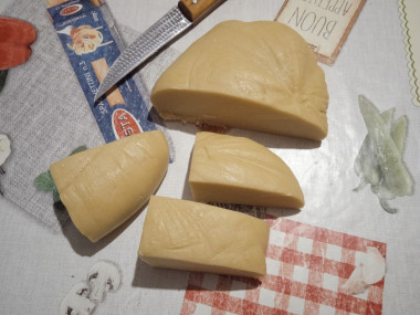 Делим тесто на одинаковые шарики. Их количество зависит от диаметра коржей, которые вы планируете печь. Мои были около 22 см, я разделила на 8 шариков.