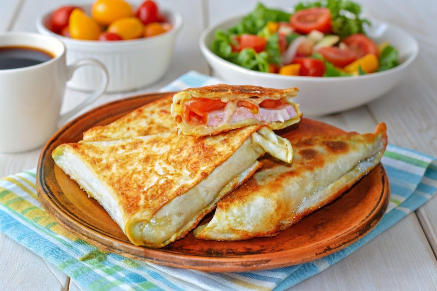 Готовые остывшие треугольники храните в холодильнике в герметичном контейнере до 24 часов. Разогревайте на сухой сковороде или в духовке/тостере для восстановления хрустящей корочки.