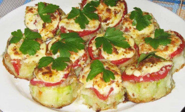 Такое блюдо очень хорошо сочетается со свежими овощами или салатами. Предложите к фаршированным кабачкам любимые соусы и молодую зелень.