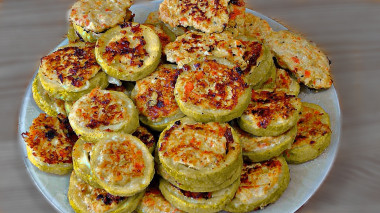 Если у вас молодые кабачки без семян и с плотной сердцевиной, то вырезанные остатки кружочков так же можно посыпать немного солью и обжарить.