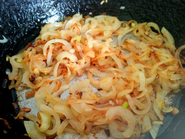 В сковороде с толстым дном разогрейте растительное масло. Отправьте лук и морковь обжариваться. Степень обжарки определите для себя сами. Овощи можно лишь слегка припустить до прозрачности либо интенсивно обжарить до золотистого оттенка.