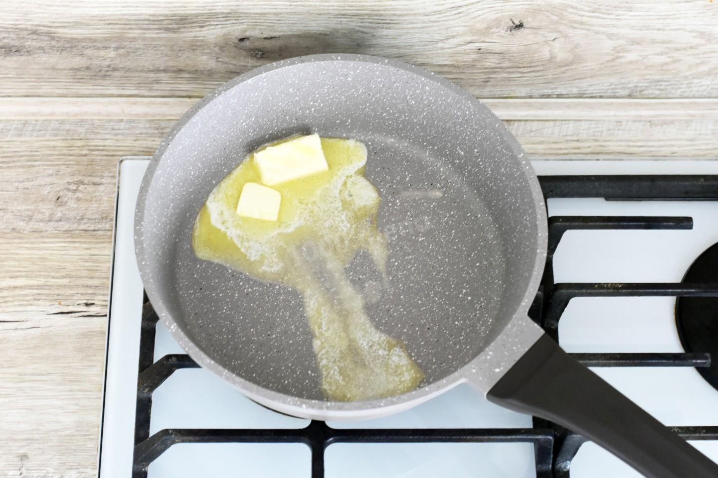 В сковороде на среднем огне разогрейте сливочное масло. Сливочное масло можете заменить на растительное. О том, как подобрать идеальную сковороду, а также как правильно выбрать масло, читайте в отдельных статьях, ссылки в конце рецепта.