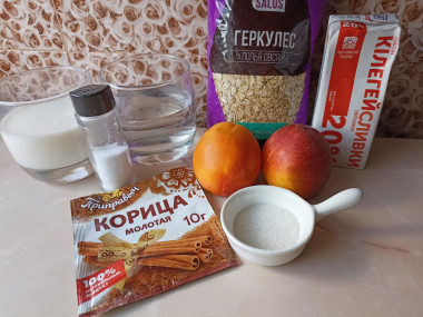 Сегодня на завтрак сварила овсяную кашу с фруктами. Молоко использовала обычное, жирностью 3,2%, вместо коричневого сахара взяла белый. В кастрюле смешала овсяные хлопья "Геркулес", сахар, соль, молотую корицу. Залила смесью воды и молока, поставила вариться. На этом этапе персики добавлять не стала, чтобы не переварить их , а добавила , когда каша была практически готова, одновременно налила в кашу сливки, всё вместе проварила ещё 2-3 минуты. Получилось очень вкусно, каша нежная, сливочная с ароматом персика и корицы.Кусочки персика сохранили форму, очень аппетитно! Спасибо автору за рецепт!