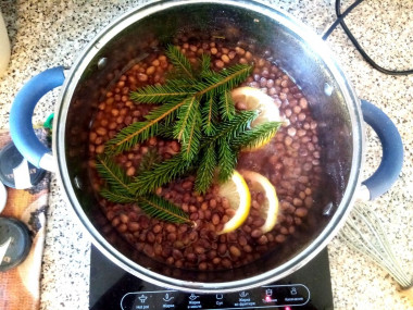 Шишки промойте под прохладной проточной водой. Затем залейте их холодной водой и оставьте на 2-3 часа. За это время шишки набухнут, из них немного уйдёт горечь, а также мелкие насекомые. Шишки ещё раз промойте. Кастрюлю используйте из нержавейки или алюминия, её легче отмыть от смолы. Для варки шишек, как зрелых так и зелёных, я использую старенькую алюминиевую кастрюлю. Не используйте пластиковые ведёрки, дуршлаги и т.д., всё будет безвозвратно испорчено.