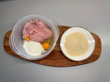 Куриные котлеты на ужин, очень удачная идея. Подавала их с картофельным пюре. Фарш замешивала в блендере, как и автор. Сначала перекрутила куриную грудку, лук и чеснок, а затем добавила все остальное и еще раз взбила воздушный фарш. Из специй добавила сладкую паприку и овощную смесь. Пока занималась делами, фарш простоял в холодильнике целый час. Это даже хорошо, лучше набухла манка. Масса получилась пастообразной, поэтому я мочила руки водой и формировала котлетки. Панировочных сухарей действительно нужно не жалеть)