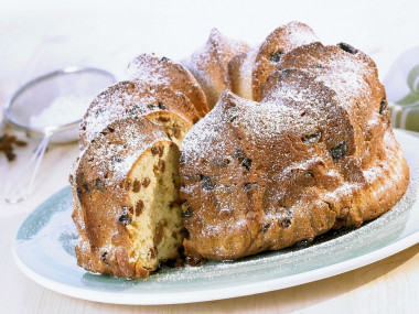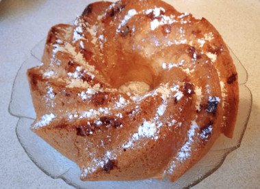 Переложите готовый кекс на решетку для остывания. Посыпьте сахарной пудрой и подавайте с кофе, чаем или другими напитками. По желанию полейте кекс сиропом, шоколадом или глазурью, чтобы придать ему праздничный вид. Приятного аппетита!