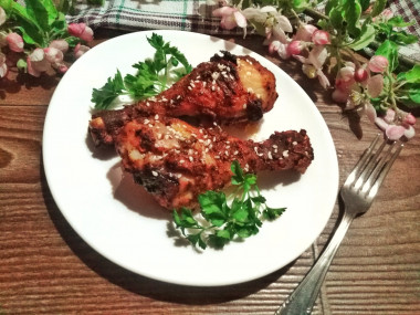 Кушали ароматные ножки с овощным лёгким летним салатом. Перед подачей украсила ножки кунжутом)