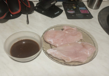 Курочку, маринованную в специях, соевом соусе и масле, можно пожарить на обычной сковороде или на сковороде гриль.