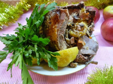 И песни пели особые - тематические? Magnago, я предлагаю сначала эту фаршированную шею отварить в бульоне том,в котором кости от шеи варились, а потом запечь в духовке, не так жирно будет. Правильно написали, что яйца сырые надо взбить, смешать с остальной начинкой и зашить в кожу, они же все равно сварятся, зато на разрезе будут намного красивее смотреться, туда, куда попадет яичная масса, там и видно на разрезе будут яичные разводы, мне рецептик очень понравился, так и сделаем, когда шею приобретем, да?