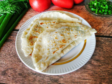 Разогрейте сковороду. Обжарьте кутабы на сухой сковороде на среднем огне с двух сторон да золотистого цвета.