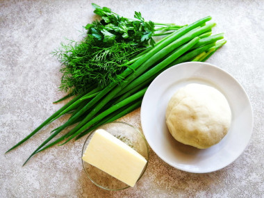 Пока тесто отдыхает, приготовьте начинку. Как сделать начинку? Зелень тщательно промойте. Если есть толстые веточки, уберите их. Зелень хорошо обсушите и мелко нарежьте.