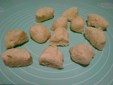 Охлажденное тесто разделите на равные части. Каждую часть скатайте в колобок и прижмите сверху, чтобы получилась печенюшка толщиной 1-1,5 см. Можно тесто раскатать в пласт и вырезать печенье формочками.
