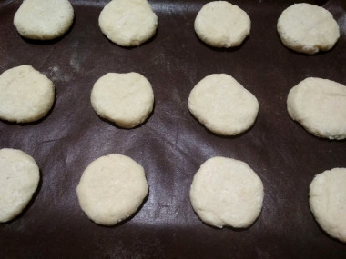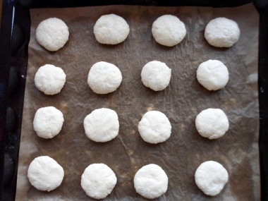 Сформированное печенье выложите на застеленный пергаментом противень на некотором расстоянии друг от друга. Во время выпечки печенье немного поднимется.