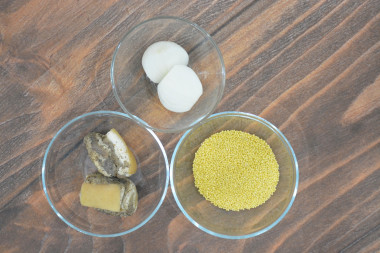 Как сварить пшенную кашу с салом и луком? Подготовьте все необходимые ингредиенты для приготовления, понадобятся самые простые продукты, которые можно купить в любом магазине.