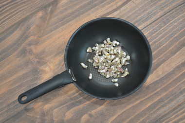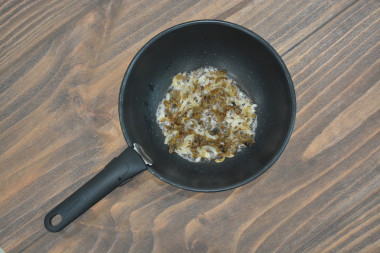 Обжаривайте все еще примерно 5-6 минут на медленном огне. Репчатый лук должен стать мягким и золотистым. Снимите сковороду с огня.