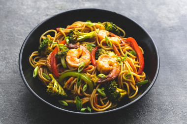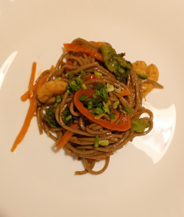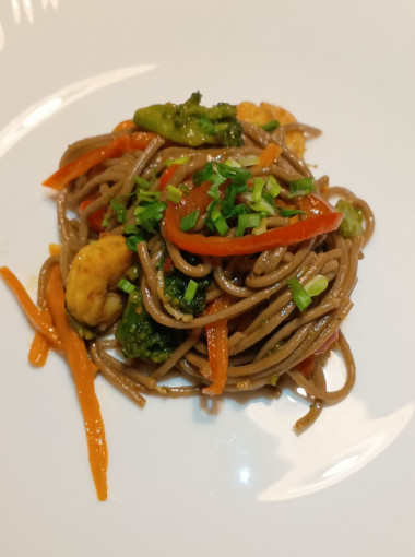 Удон с морепродуктами и овощами приготовила на встречу с подружками. Хотелось их удивить чем-то необычным. И мне удалось! Получилось очень оригинальное блюдо! Подружки остались довольными, даже рецепт попросили. Спасибо автору!