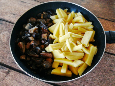 Шаг 5. Сколько жарить картошку с грибами до готовности?