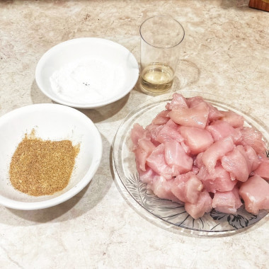 Калорийность продуктов: Куриное филе, Пшеничная мука, Крахмал, Растительное масло, Соль, Специи сухие