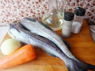 Как потушить минтай с гарниром? Ничего сложного. Подготовьте продукты. Рыбу можно использовать свежую или замороженную. Замороженную предварительно разморозьте. Подробнее о правильно разморозке читайте в статье по ссылке в конце рецепта. У меня минтай без головы потрошенный. Минтай считается нежирной рыбой. Поэтому потушить её в с овощами - отличный вариант. При запекании, можно порекомендовать накрыть форму фольгой.
