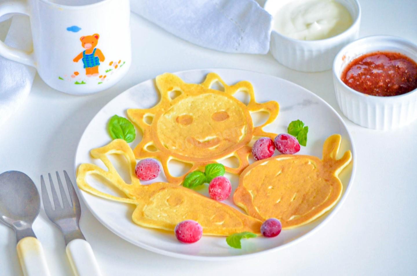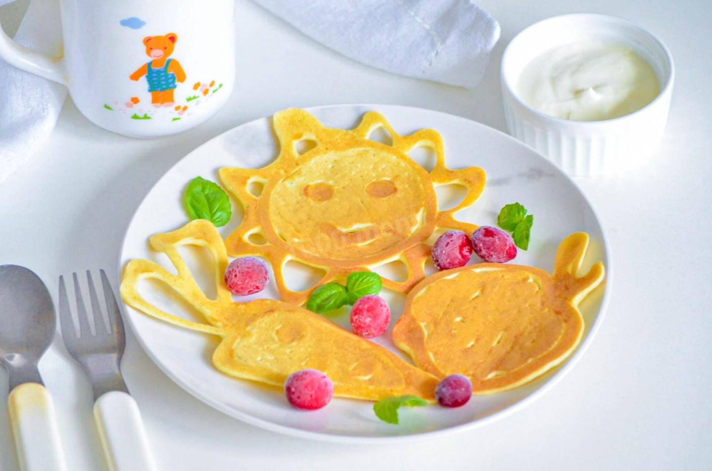 Подача «Блинный конструктор»: Напеките разные фигурки (солнце, зайчик, машинка) и предложите ребенку составить свою тарелку.