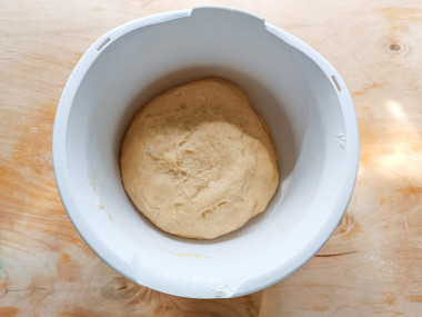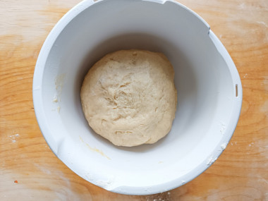 Хорошенько вымесите тесто, чтобы весь жир вмешался в него. Тесто станет очень податливым, мягким и удобным в работе. Накройте миску с ним полотенцем и оставьте на 2 часа.