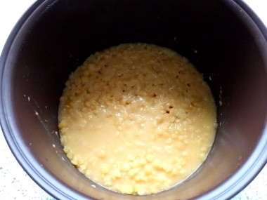 Вскипятите указанное количество воды и залейте ею горох. Можно залить горошины и холодной водой, просто в этом случае процесс займет немного больше времени. Затем закройте мультиварку-скороварку крышкой и включите режим "Тушение" на 45 минут. Точное время и режим зависят от особенностей работы вашей техники. Ориентируйтесь на инструкцию к вашему прибору. Подробнее об этом читайте в статье по ссылке в конце рецепта.