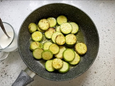 У меня получились аппетитные золотистые кружочки кабачка, пропитанные нежным сливочным соусом! Они остались чуть хрустящими, за этим я проследила. Можно, конечно, и до мягкости потушить, но я люблю немного твердые кабачки.