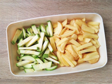 По желанию добавьте к кабачкам и картошке болгарский перец. Очень вкусно.