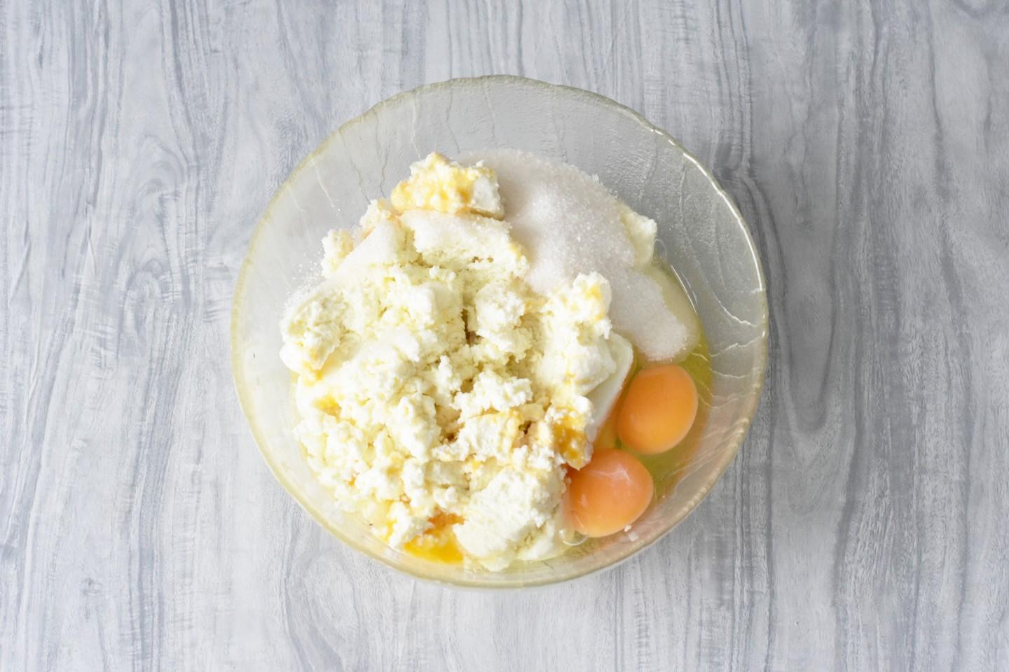 Для начала подготовьте ингредиенты по списку. Творог подойдет любой, но желательно не сухой (в нем могут быть мелкие жесткие крупинки, они могут испортить общее впечатление от блюда). О том, как подобрать творог, читайте в статье по ссылке в конце рецепта. Включите духовку на 180 градусов.