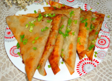 На завтрак приготовила конвертики из лаваша на сковороде. Творог присолила по вкусу, добавила черный перец, сметану, зелёный лук. Лаваш нарезала на квадраты, выложила начинку, свернула конвертики, обжарила их с обеих сторон на растительном масле. Очень вкусно! Хрустящий лаваш и сочная мягкая творожная начинка. Отличный завтрак! Спасибо за рецепт, Snezhana!