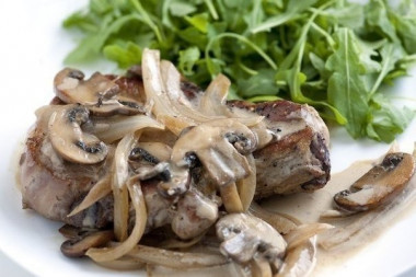 Индейка с шампиньонами в сливочном соусе готова! Дополните её любым гарниром и подавайте к столу в горячем виде. Приятного аппетита!
