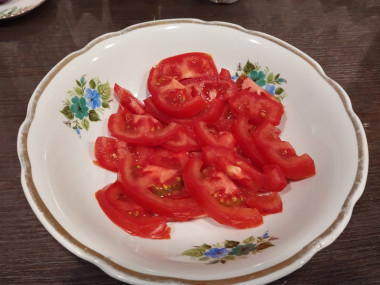 Помидоры выбирайте сочные, но плотные. Мягкие плоды плохо держат форму, в процессе нарезки и приготовления они расползутся в бесформенную массу и испортят внешний вид блюда.