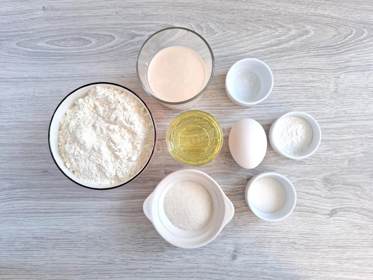 Как приготовить песочное тесто на кефире? Подготовьте все необходимые ингредиенты. Кефир можно заменить на ряженку.