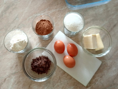 Рецепт очень простой. Главное взять качественные ингредиенты. Я готовила с какао-порошком и горьким шоколадом, яйца были с2, поэтому взяла 3 штуки. В моей духовке есть режим 160С, время выпечки увеличила до 40 минут, ждала, когда схватится серединка. Текстура получилась та самая: хрустящая корочка и влажная, бархатистая сердцевина. Вкус получился глубоким, насыщенно-шоколадным, без детской приторности.