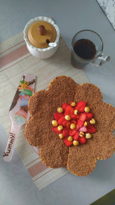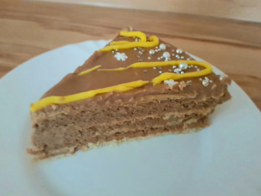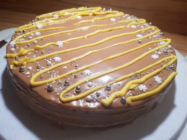Готовить очень просто, подходит для готовки с детьми. Деткам понравится намазывать коржи сладко сгущёнкой) Самое сложное в этом рецепте — дождаться, пока коржи достаточно пропитаются!