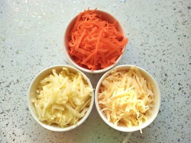 Как сделать Салат морковь яблоко сыр? Приготовьте ингредиенты для салата. Все продукты, необходимые для его приготовления, используются готовые, время на термическую обработку тратить уже не нужно. Салат получится более вкусным и сочным, если использовать свежие овощи и фрукты. Морковь вымойте, почистите и натрите на крупной терке или терке для приготовления корейских салатов.