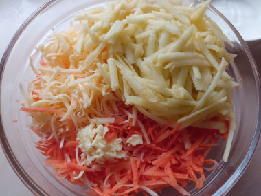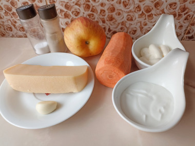 Даже не ожидала, что мне так понравится такое сочетание продуктов. Сыр и чеснок приятно оттеняют сладковатый вкус яблока и моркови. Попробуйте приготовить для разнообразия рациона!