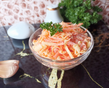 Приготовила салат морковь яблоко сыр. Делается он буквально несколько минут, удобно, когда нужно что то приготовить на скорую руку. Лёгкий морковно- яблочный салат с добавлением сыра и чеснока становится более пикантным и сытным. Полезно и вкусно.Спасибо за рецепт, Snezhana!
