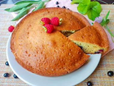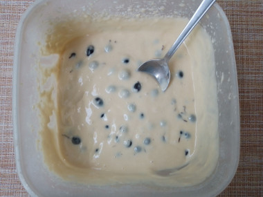Всыпьте в тесто ягоды и аккуратно перемешайте его лопаткой, стараясь, чтобы ягоды оставались целыми.