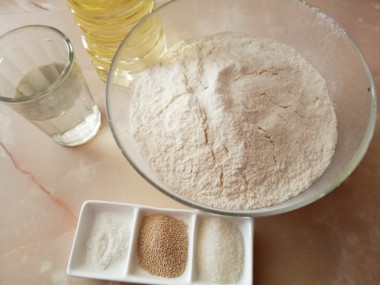 Как приготовить жареные пирожки на кипятке дрожжевые на сковороде? Подготовьте необходимые ингредиенты. Муку лучше взять высшего сорта. О сортах муки подробнее читайте в конце рецепта. Для обжаривания пирожков уйдет примерно 150-200 мл масла, количество, указанное в ингредиентах (50 мл) - это то масло, которое впитается в пирожки и будет учитываться при подсчёте калорий. Подробнее читайте в статье по ссылке в конце рецепта.