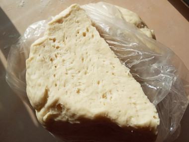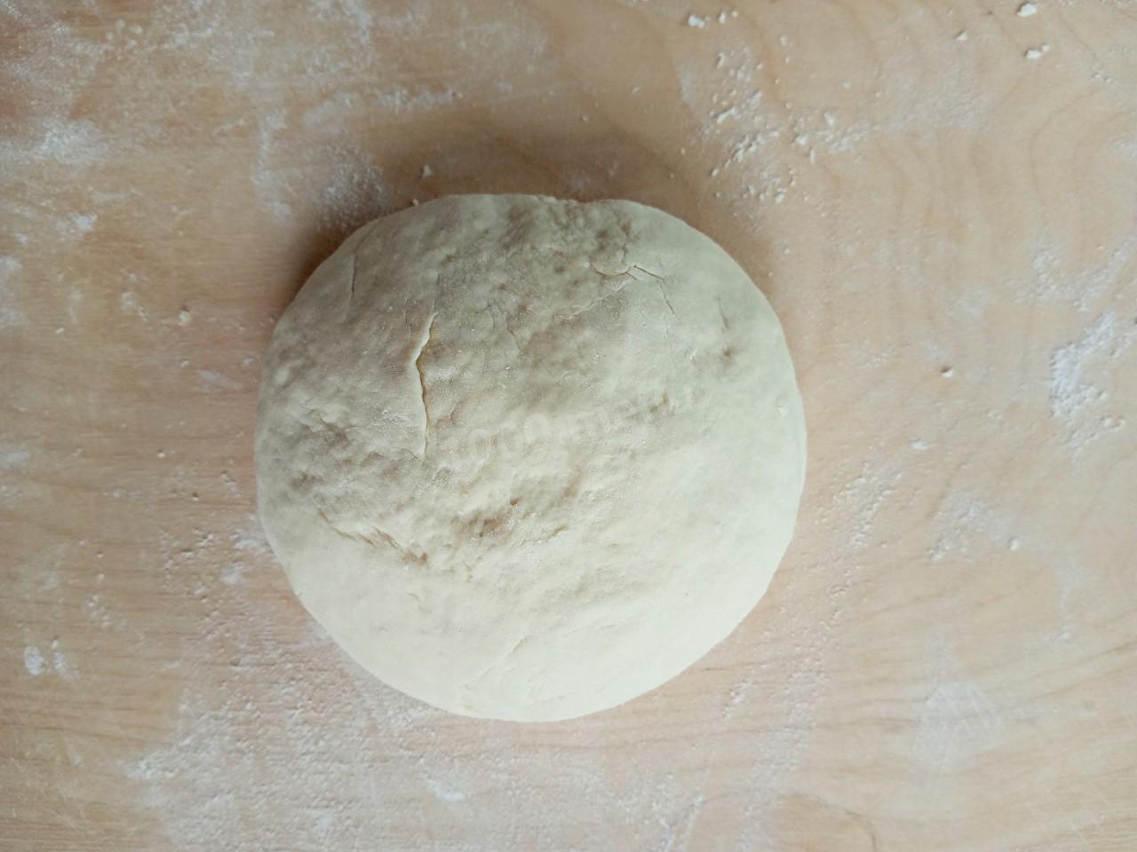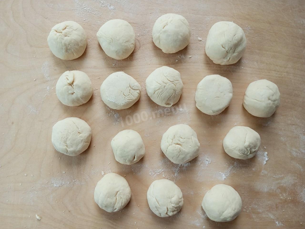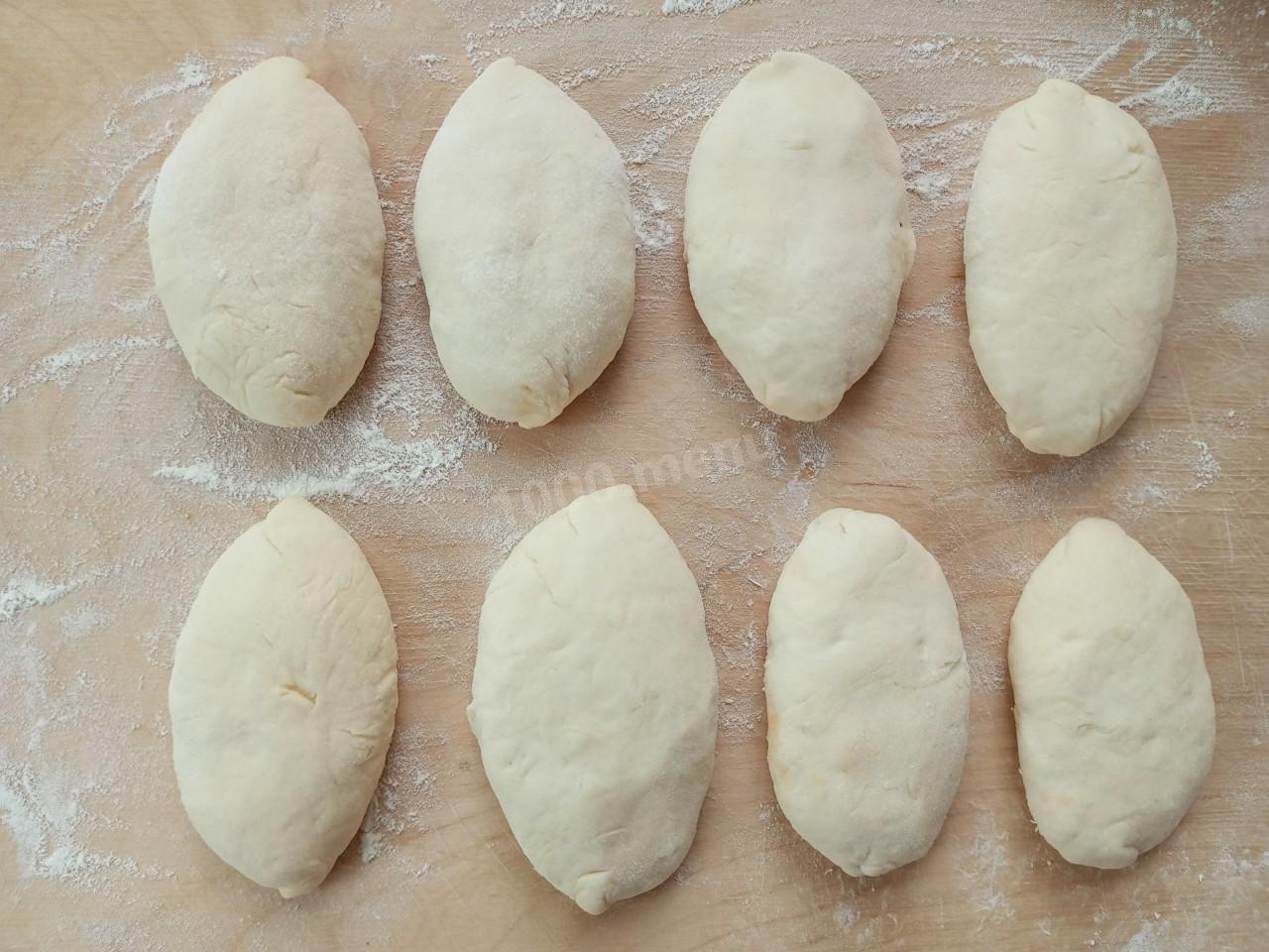 Полученное тесто будет мягким и эластичным. Разделите его на две части. Сформируйте "колбаску" и отщипывайте от неё небольшие кусочки - заготовки будущих пирожков. Из этого количества теста получается ориентировочно 15-16 пирожков.