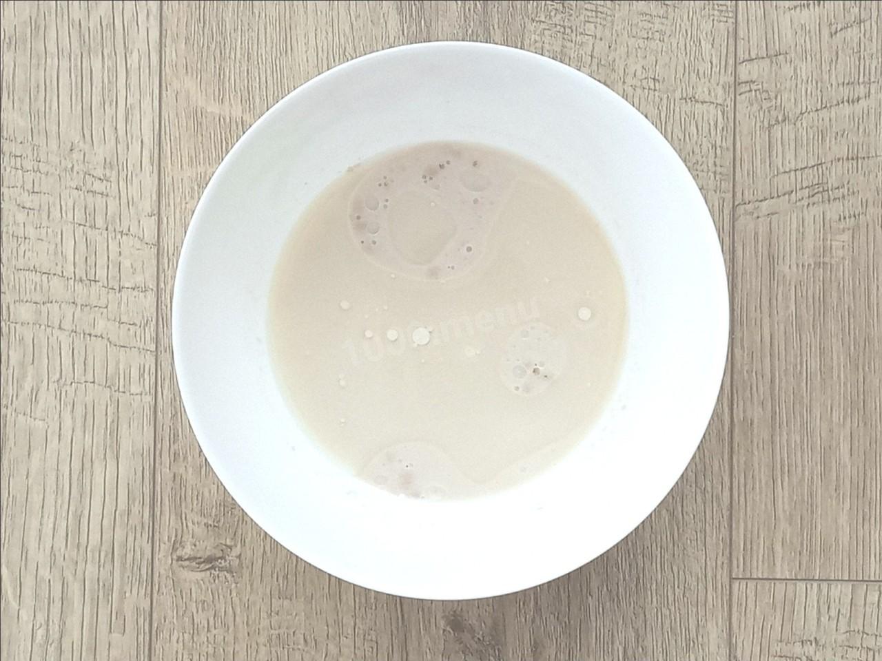 Для начала замесите тесто на пирожки заварное на кипятке. В большую миску влейте теплое молоко и добавьте быстродействующие дрожжи, соль, сахар, подсолнечное масло. Молоко должно быть именно теплым, не обжигающим, иначе дрожжи погибнут. Подробнее о нюансах работы с дрожжами и о их видах читайте в конце рецепта.