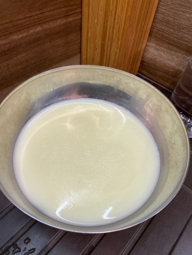 Молоко покупала на рынке натуральное. Фото бронзочки позже прикреплю. Пока поставила на 2 часа остужаться. А вот фото не зелёной сыворотки