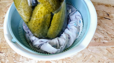 Слейте получившуюся массу в дуршлаг, застеленный марлей. Лучше сложить ее в несколько слоев, чтобы будущий сыр не стек в дырочки. Часть сыворотки обязательно оставьте, в ней брынза будет храниться.