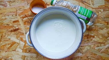 Как сделать брынзу из коровьего молока с уксусом в домашних условиях? Подготовьте все необходимые продукты. Уксус берите столовый 9%. Количество соли регулируйте по вкусу. По данному рецепту брынза получится чуть солоноватой, почти пресной. О том, какое молоко лучше выбрать, читайте в конце рецепта.