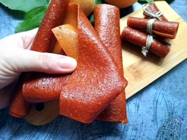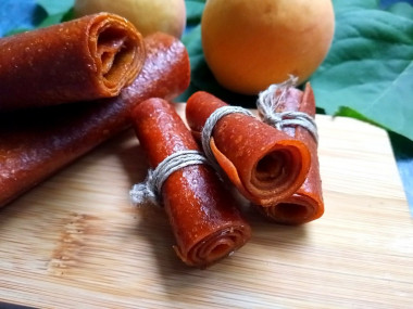 У нас в семье все любят пастилу. Я даже не знаю сколько она может храниться, потому что съдается моментально) Конечно это дело трудозатратное и долгое, но зато получается полезное лакомство. Легче всего делать пастилу из абрикос, косточки вынимаются без проблем и мякоть хорошо измельчается. Я всегда абрикосы варила, но оказалось, что можно просто пробить блендером! Это же столько сил и времени экономит) Еще этот рецепт мне понравился тем, что рассчитано точное количество продукта на большой противень. Пастила в итоге получилась идеальной толщины! В этот раз я случайно обнаружила новый для себя способ выровнять поверхность абрикосового пюре. Раньше разглаживала ложкой или шпателем для крема. А в этот раз мне попалась в руки гибкая разделочная доска, она очень тонкая. Просто прислонила её к поверхности и провела в одну сторону, потом в другую. Идеально ровная поверхность готова! Жаль, я случайно удалила это фото. Пастилу сушила 4 раза по два-три часа с полным остыванием. Получилась она одинаковой толщины, очень гибкая. А еще вкусная и душистая. Теперь буду только так пастилу делать) Спасибо за рецепт!