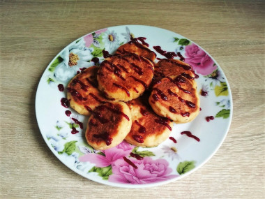 Для жарки разогрейте сковороду до горячего состояния и налейте немного растительного масла. Выложите подготовленные сырники и обжаривайте их на небольшом огне по 3-4 минуты с каждой стороны.