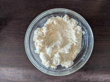 Постепенно подсыпайте муку и замешивайте тесто. Муки может понадобиться чуть больше или меньше, чем указано в рецепте. Ориентируйтесь по консистенции готового творожного теста. Количество муки будет зависеть от консистенции и влажности творога.