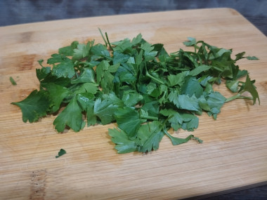Укроп и петрушку вымойте, а воду стряхните. Зелень крупно порубите ножом.