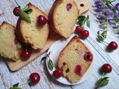 Пока перебирала вишню на варенье захотелось что-нибудь испечь вишнёвое) Благодаря поиску быстро нашла рецепт вишневого кекса. Тесто замешивается легко. А чтобы сливочное масло быстрее стало мягким, положила его в микроволновку и немного "разморозила". Тесто мне очень понравилось, оно получилось таким невероятно воздушным, напоминает суфле. Форму взяла 20 см. в диаметре. Тесто и вишню тоже выложила слоями. Получилось три слоя теста и два вишни. Запекала до сухой палочки. Сразу отметила, что кекс легко вышел из формы. Обычно фрукты оседают на дно и пирог ломается, если заранее не подстелить пергамент. А этот кекс вышел без проблем) Нам он понравился, текстура у него шелковистая, очень приятная. Кекс сочный, в меру сладкий, а кисленькие вишенки гармонично вписываются в эту выпечку. Пока не закончился сезон вишни рекомендую всем приготовить!